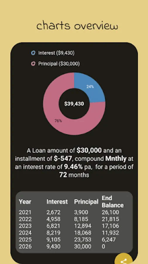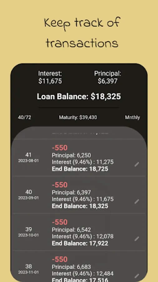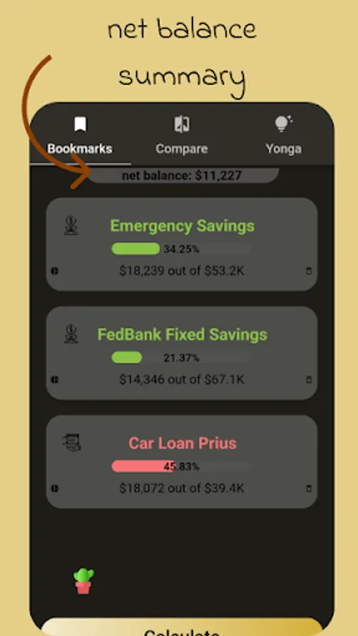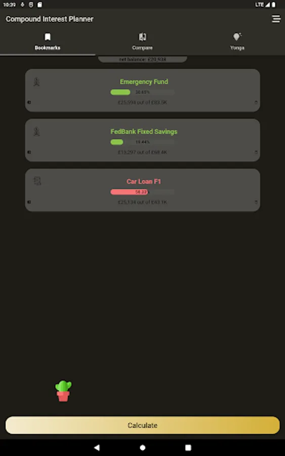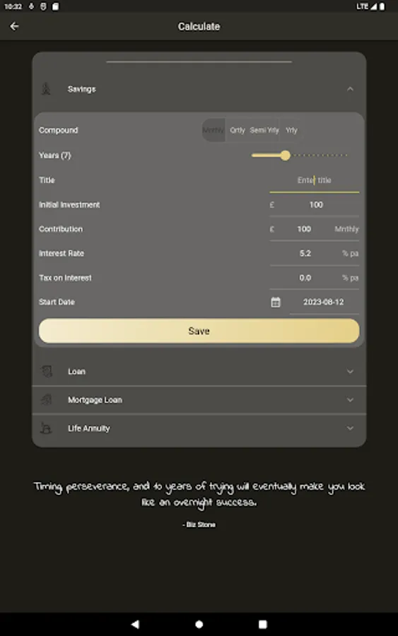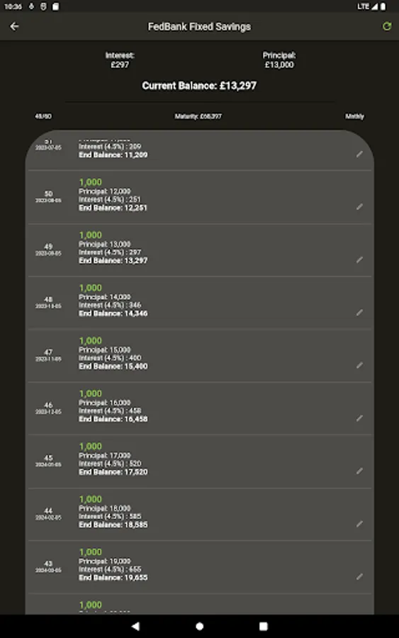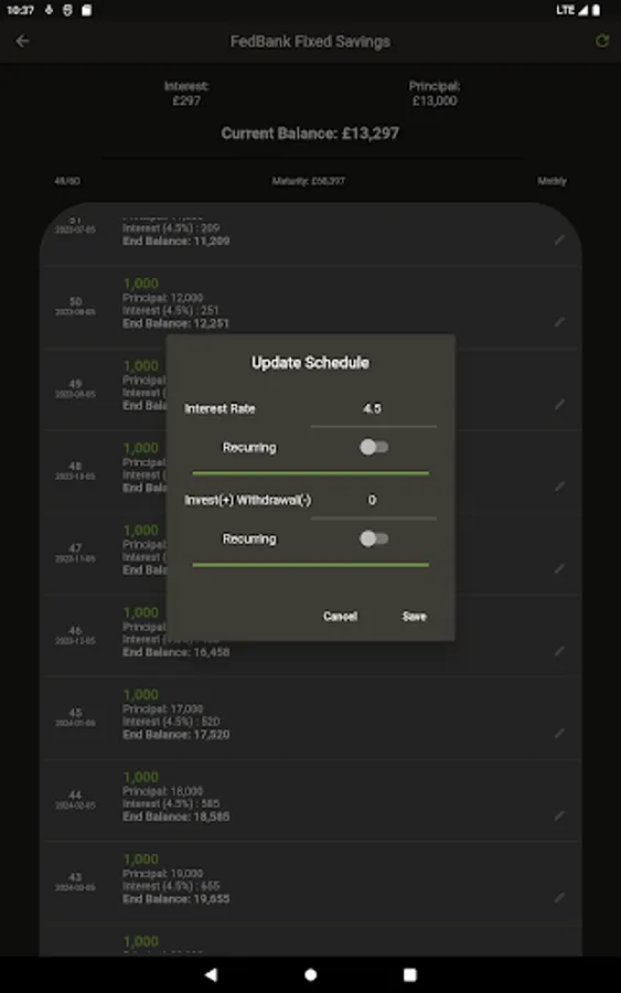 Saved calculations can be edited by either changing the interest rate, and adding or withdrawing for a specific period.