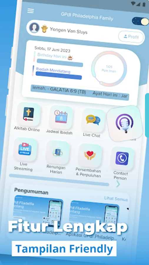 The GPdI Philadelphia Family application is an application that contains all the services available at the GPdI Philadelphia Family Tenggarong and contains Spiritual activities in it which of course can strengthen the bonds of love among God's Congregation.