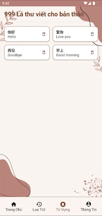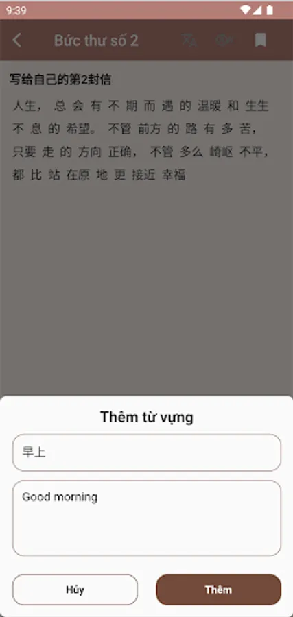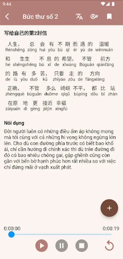 Through the use of the application, you can view specific content and translations of each letter, listen to audio, and save vocabulary.