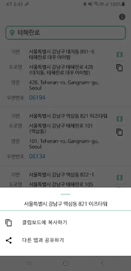 Search for an address by various keywords such as lot number, street name, building name, etc.