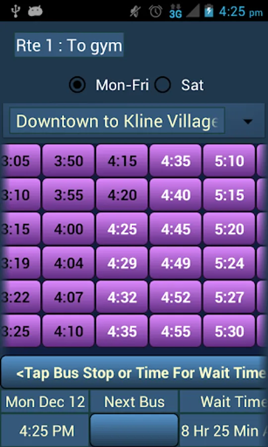 NOTE: Burg Bus Schedules displays times and calculates wait times from the schedule, not from real time bus locations yet.