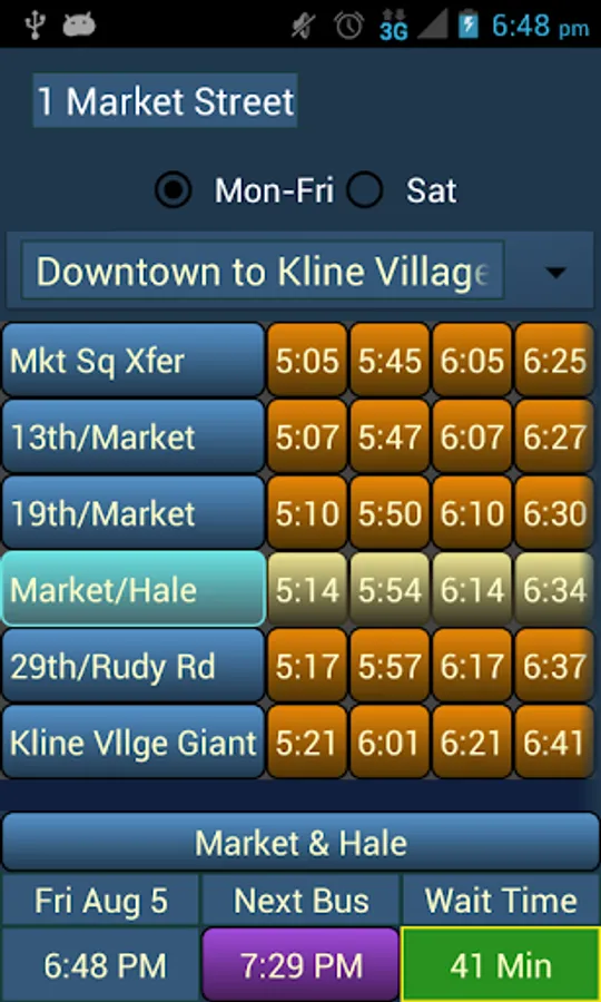 NOTE: Burg Bus Schedules displays times and calculates wait times from the schedule, not from real time bus locations.