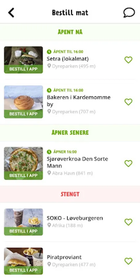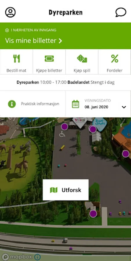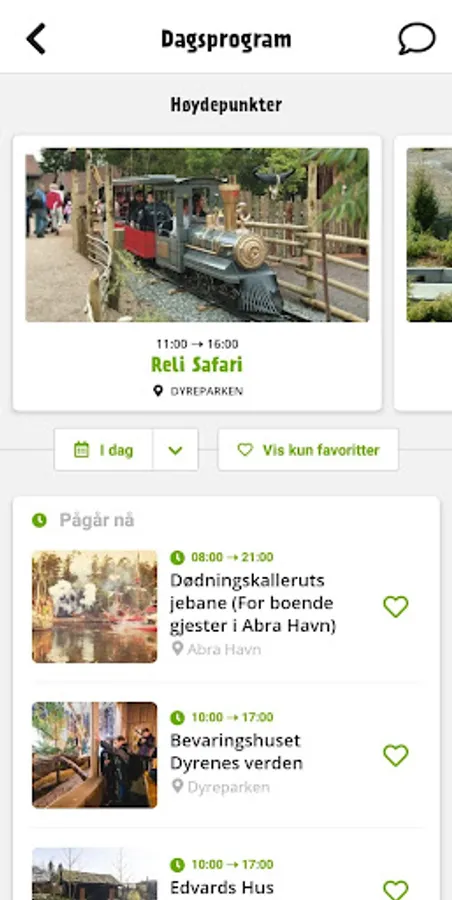 The app gives you a simple overview of activities, entertainment, animal presentations and restaurants you can visit in Dyreparken, Badelandet, Abra Havn and Dyreparken Hotell. Use the app to plan your day, choose which activities you want to experience and mark them as favorites. The map shows where the various attractions are located, so you can easily orientate yourself in the Park.