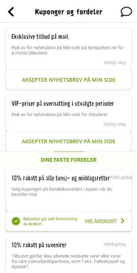 When you log in to the app with your profile from dyreparken.no, you will have access to all your tickets and bookings. You can also order food and buy new products and experiences directly from the app to ensure that you get the unique experiences Dyreparken offers.
