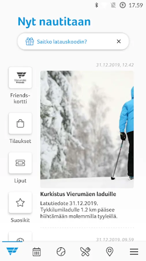 Vierumäki Friends mobile app is a friend who will guide you and give you great benefits. The app lets you know what's happening in Vierumäki, sign up for exercise classes, and reap the rewards and offers. With the loyalty card found in the application, you can become a Vierumäki Friends loyal customer.