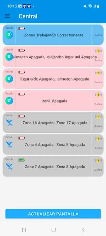 -Alertas mediante notificaciones cuando una zona presente una desconexión.
