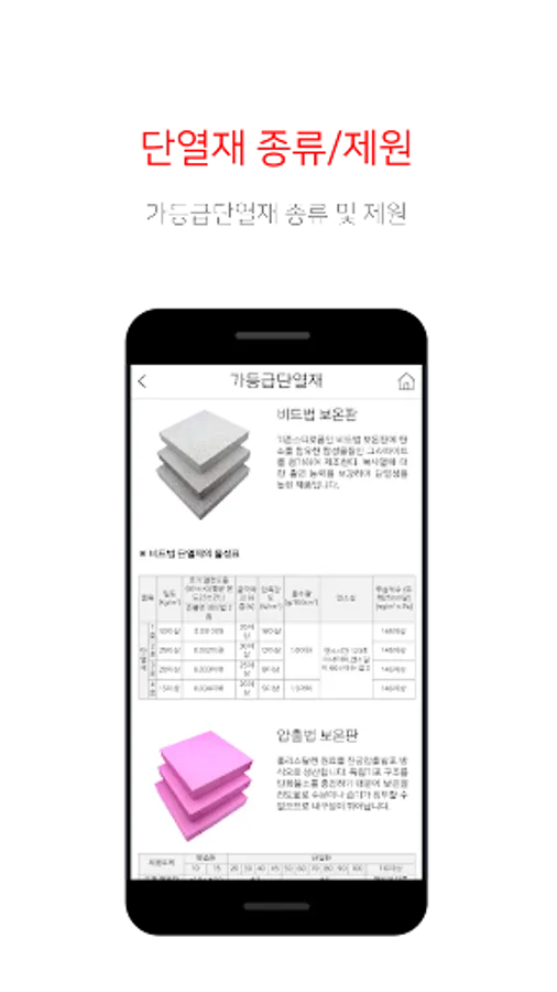 국내 최신 DB 및 기준을 적용하여 만든 단열재 종합가이드 어플리케이션입니다. 제공하는 기능은 다음과 같습니다.
