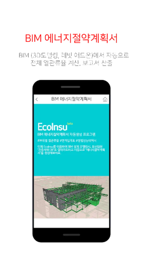 : 자체개발한 Eco-Insu(Revit Add-on)프로그램으로 3D 모델링에서 자동으로 에너지 절약 계획서 생성 가능