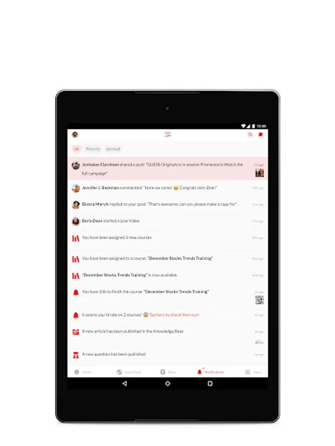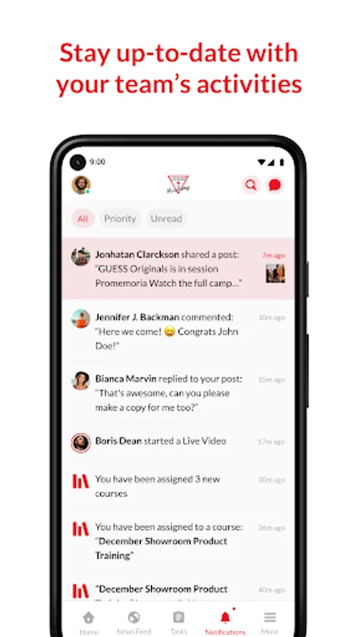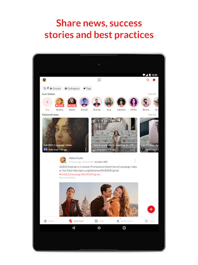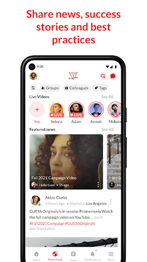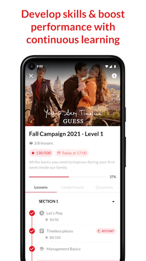 The Guess Training App is for learning and development, aimed at improving product knowledge and general skills, and to always keeping you in connection and updated on news.