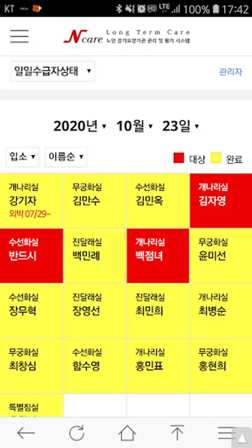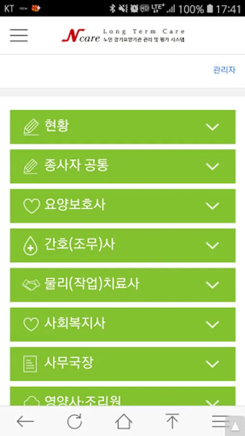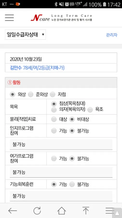 Management and evaluation system that implements the regular evaluation manual for long-term care institutions with a smartphone