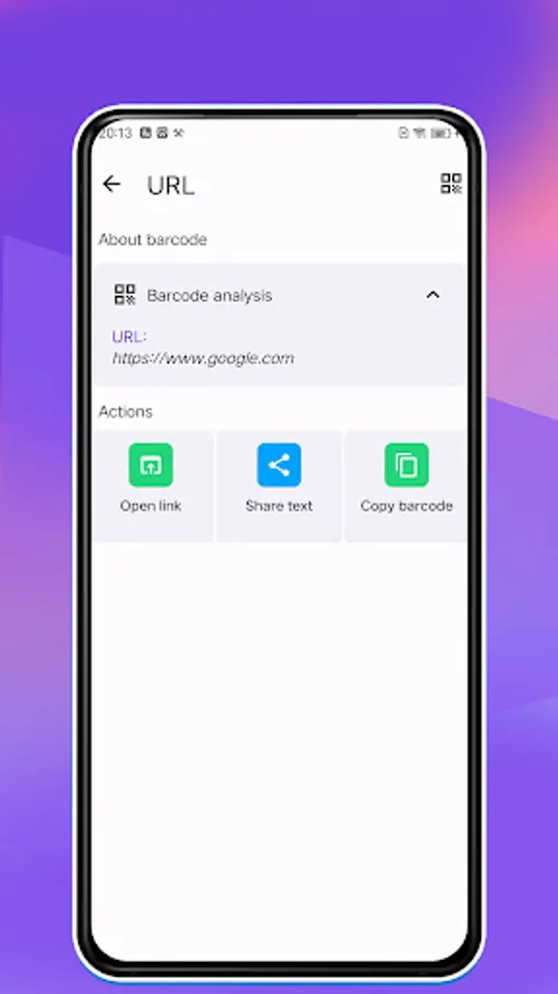 - Simply turn on the scan and align the mobile barcode, and it will automatically recognize, scan and parse the mobile barcode. After the scan is complete, the screen will provide several relevant options