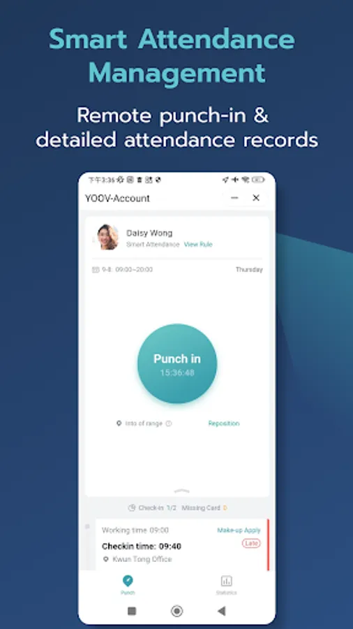 Want to simplify the repetitive daily routine and unleash hidden efficiency? Try YOOV WORK, HR app, that helps your teamwork go more smoothly! Our automation system progresses your work, providing clear analytic charts for employee management. Free you from trivial matters. Over 11,000 clients and partners trust YOOV on management.