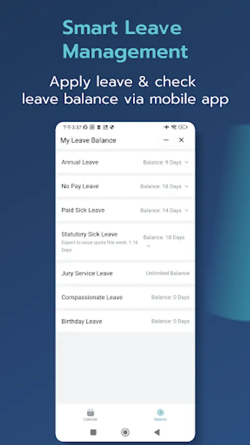 • Saving time from calculating the leave balance as leave is counted automatically.