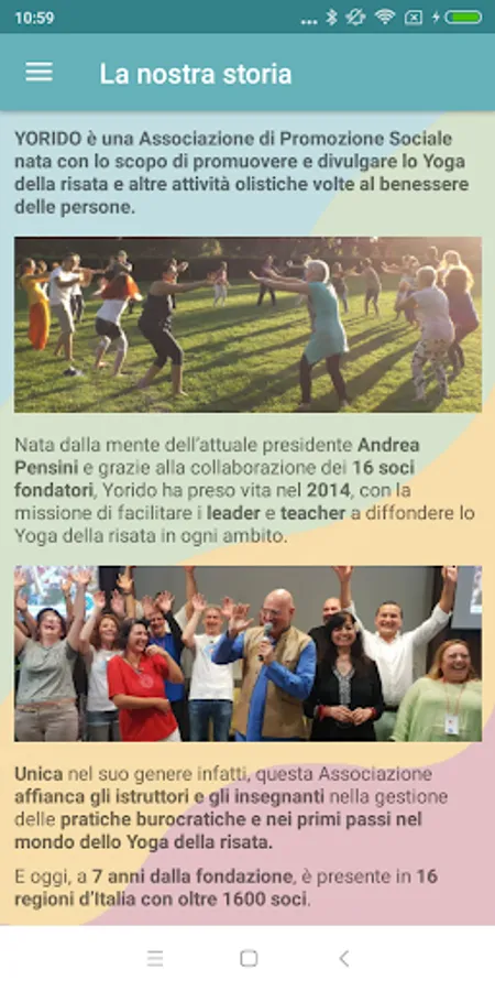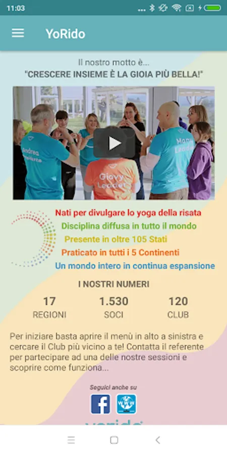 The main purpose of our app is to make known the local clubs present throughout the country and associated with YoRido, a Social Promotion Association born precisely to spread the Yoga of laughter.