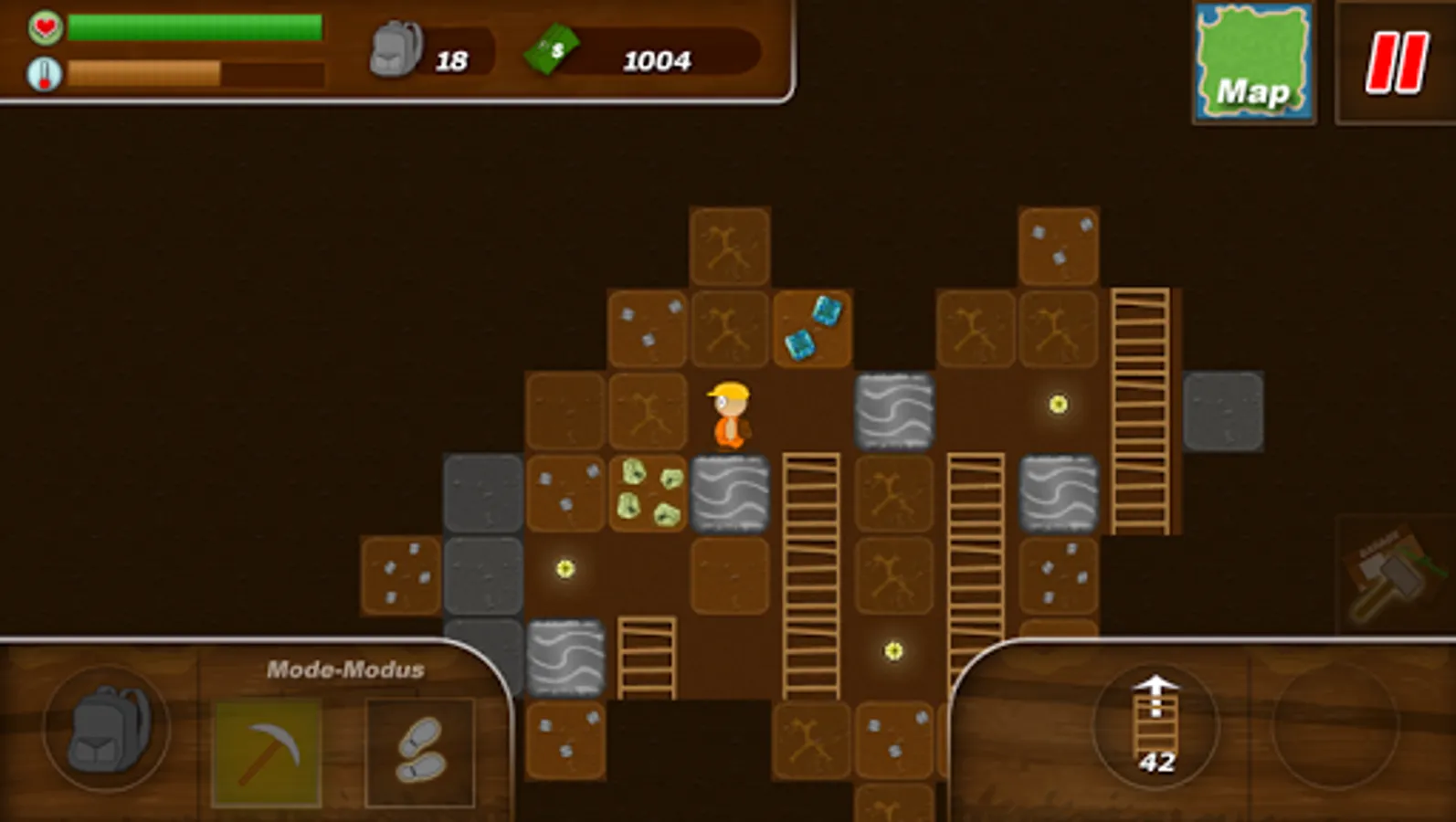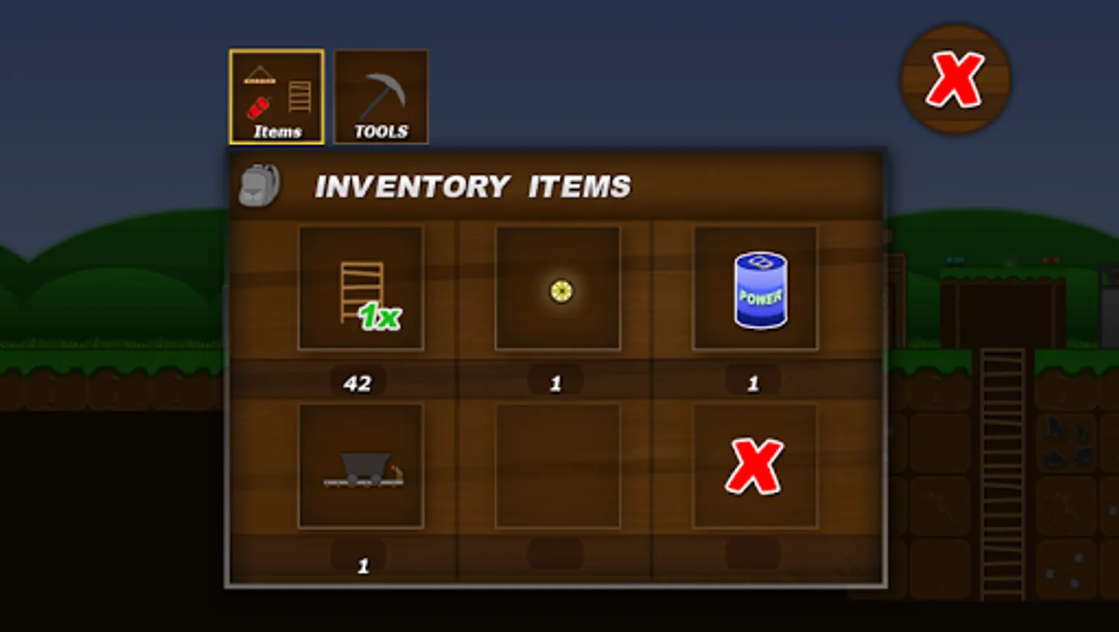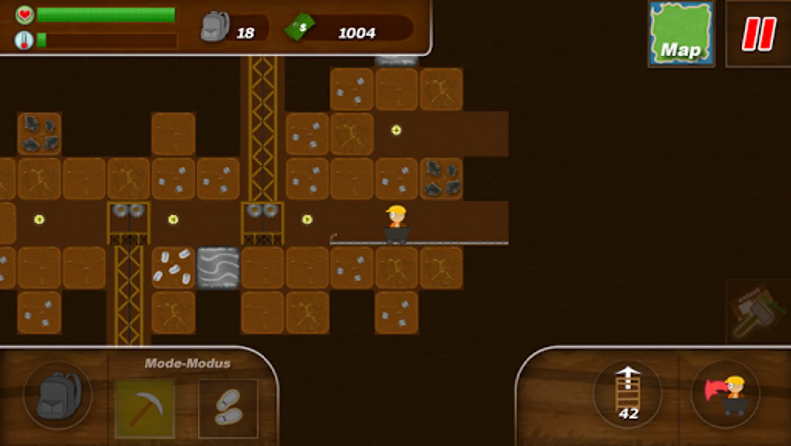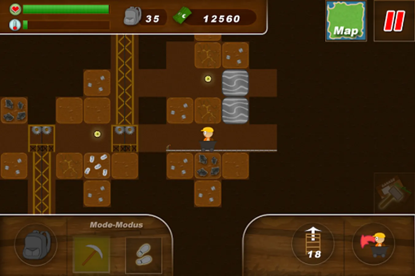 Treasure Miner is a classic sandbox game. Build your own mine infastructure and be the first miner, who discover rare artefacts, ores and gems. Sell your discoveries and expand your mine with new buildings, more lifts or better equipment. You can also upgrade your skills or buy new items, like ladders, lamps, signs or new tools.