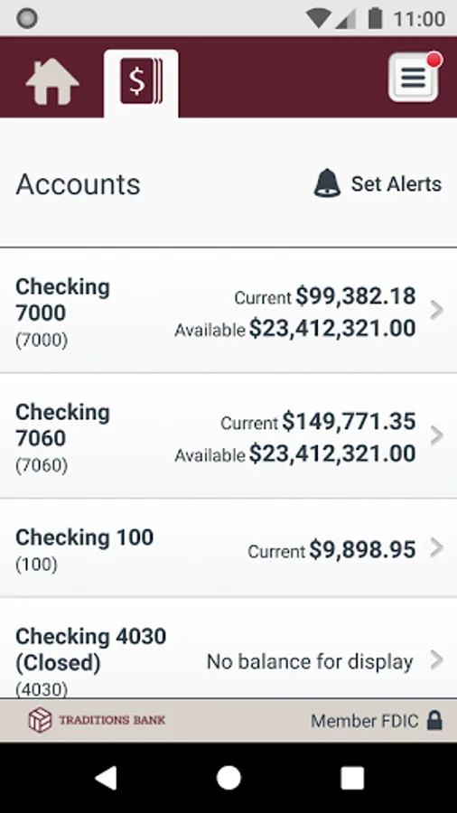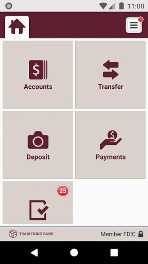 Getting started is easy. Simply download the app and sign on with your Traditions Online Banking user credentials. No additional fees apply.*