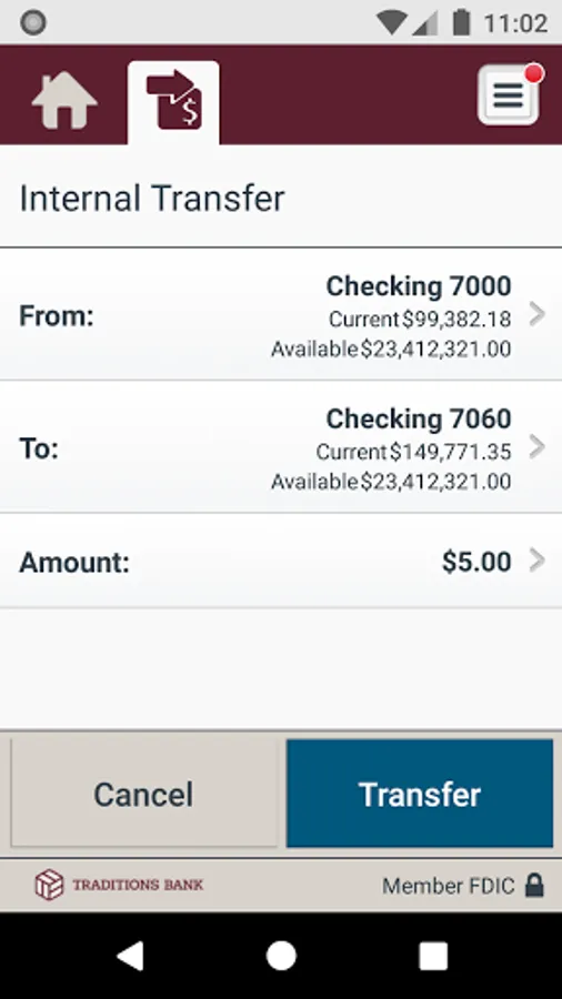 • Approve transactions scheduled through Traditions Online Banking including fund transfers, ACH transfers and wire transfers