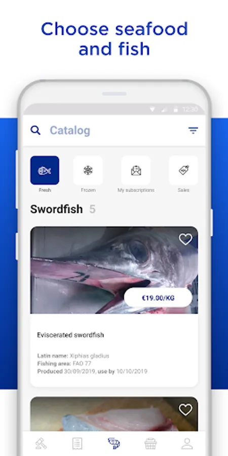 We have over a thousand fish products available in our app. We specialize in tuna, swordfish, and other seafood products like marlin. We have detailed information with pictures and specifications in our offer.