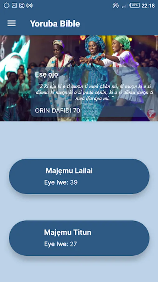 Offline Yoruba Bible app. All features are narrated in the Yoruba language