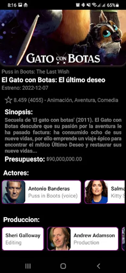 In this application you can search for information regarding your favorite movies, as well as see which ones are about to be released