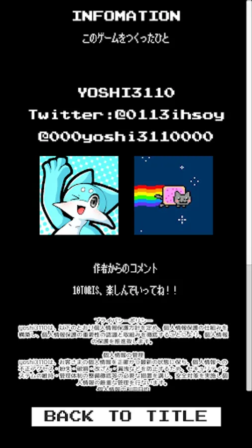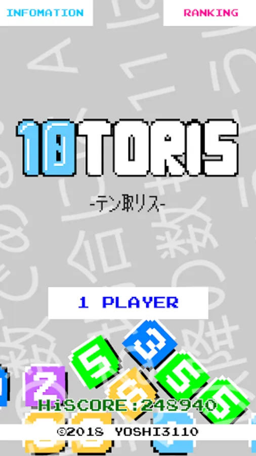 Please enjoy puzzle game "10TORIS" made with nostalgic dot picture graphics.