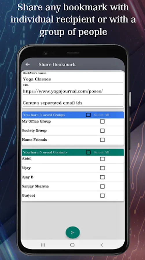 You can bookmark any digital document and also share it with people and groups. you can organize your bookmarks as a directory structure. User can save mobile and web bookmarks as well. . Bookmarks always in sync with web and mobile. The best part is sharing any bookmark with group of people.
