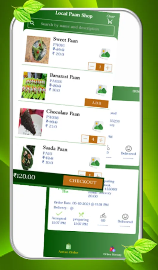 Customer can place an order or take away Paan (betel leaf) from shop.