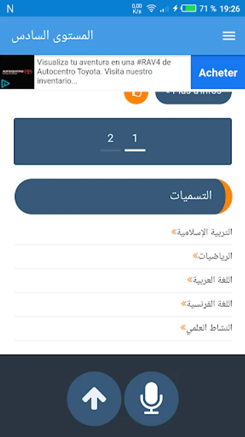 Arabic lessons, French language, mathematics, Islamic education, sociology and scientific activity