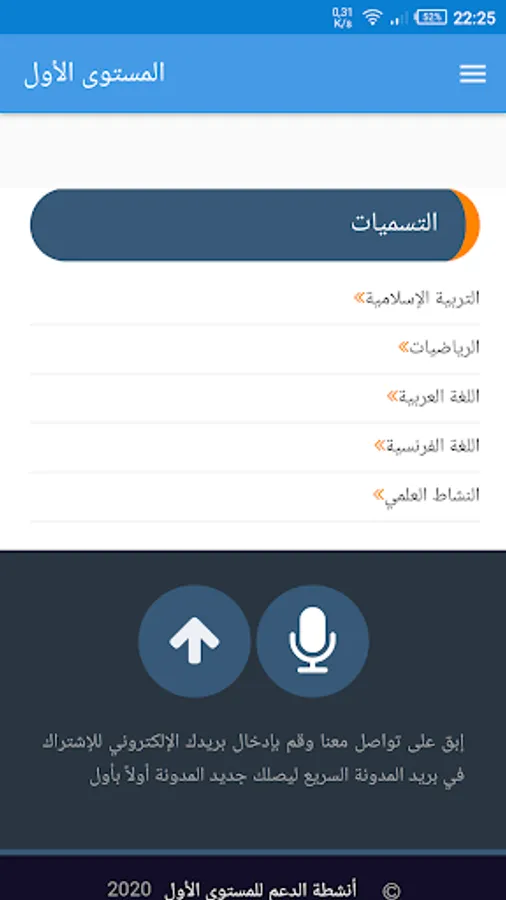 Arabic lessons, French language, mathematics, Islamic education and scientific activity