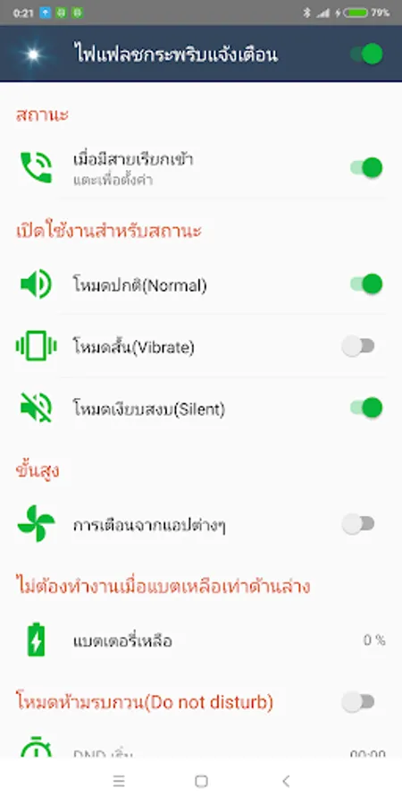 - Blink flash alerts when have call
