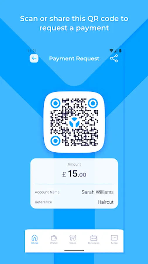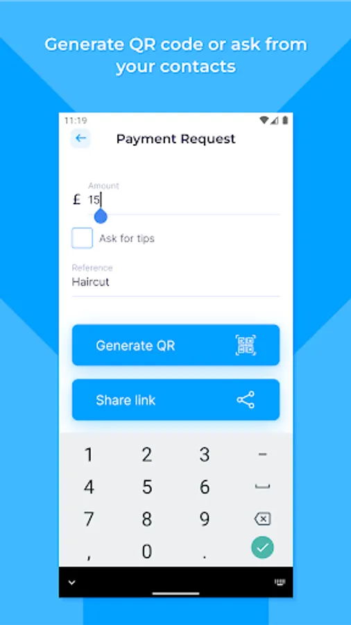 Request a payment from someone near you with a QR code, or choose a contact from your phonebook. Add a clear reference to your payment so you never forget what it was about.