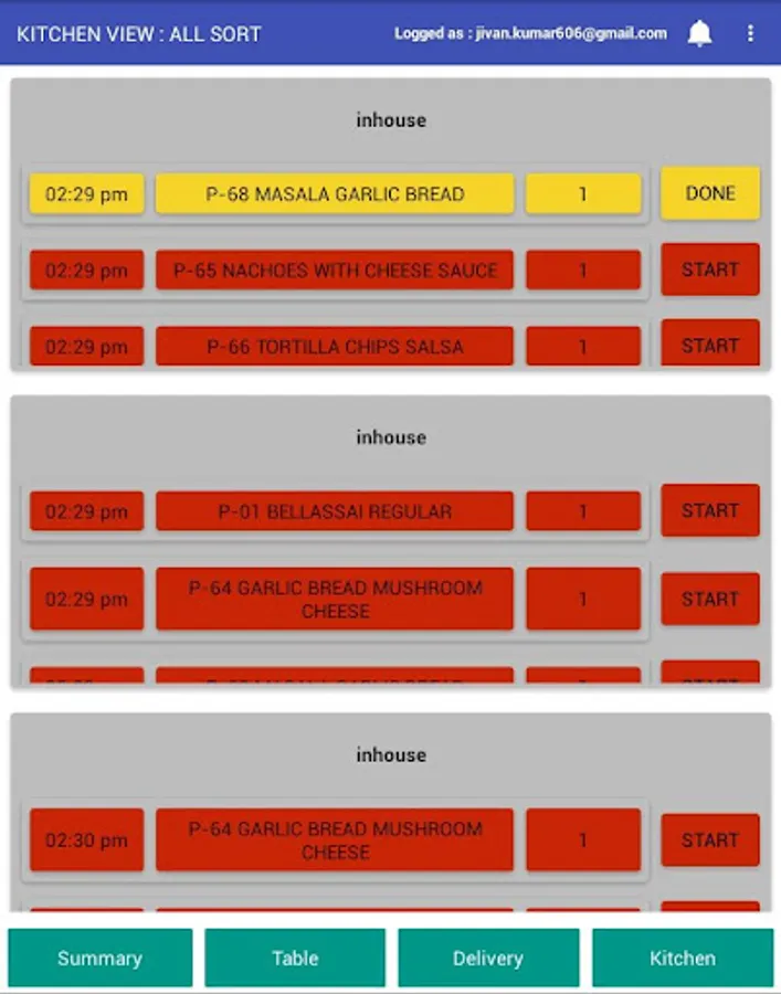 Sort is an android tab based application through which a chef can see all orders according to its deliverable type and also they can change the status of an order item according to the preparation.