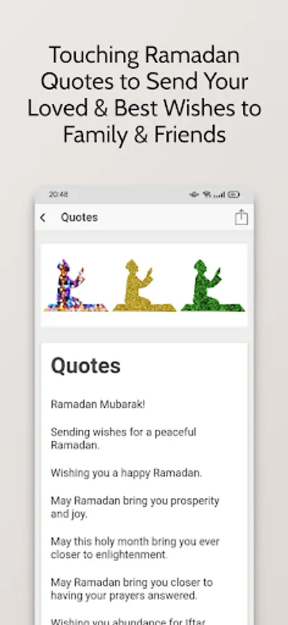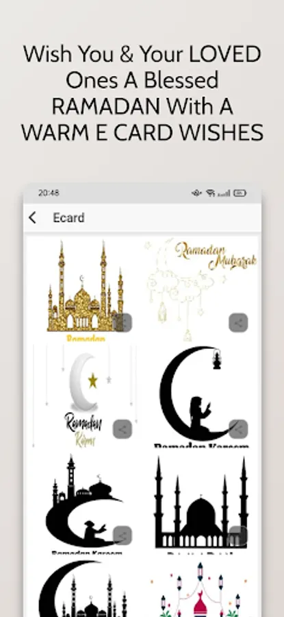 5. A share button that allow you to keep up your sharing on your greeting, wishes with your lovely Muslims friends and family