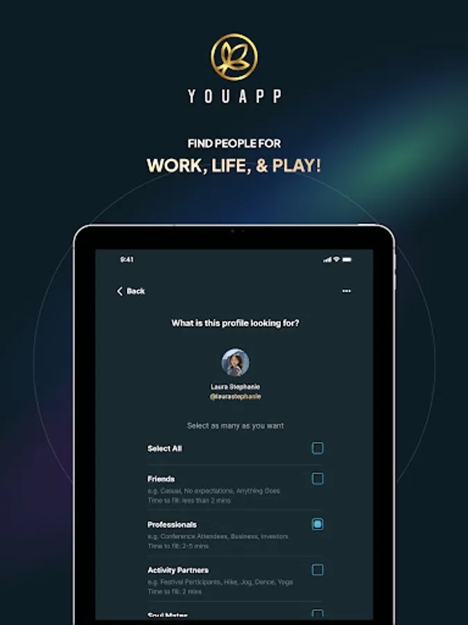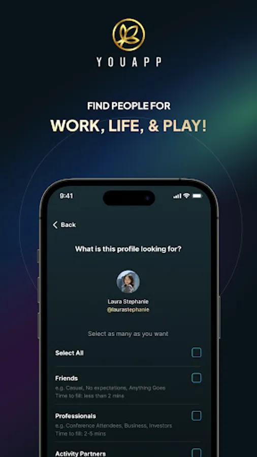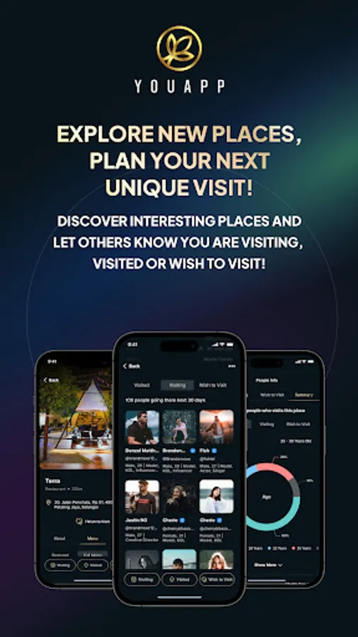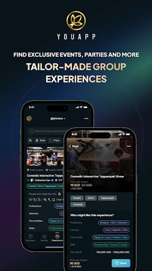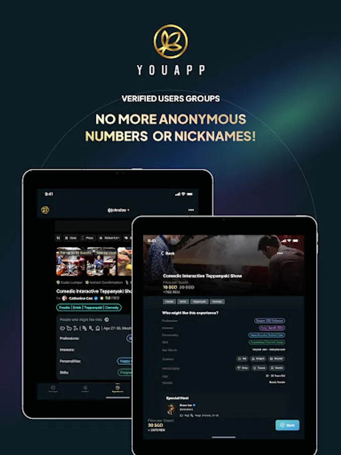 Join YouApp and become a part of a growing community of individuals with diverse interests and a passion for leisure. Create or join groups to discuss upcoming music festivals, build your YOUnique profile, make new friends, and participate in unique dining experiences for groups of 6-12 people.