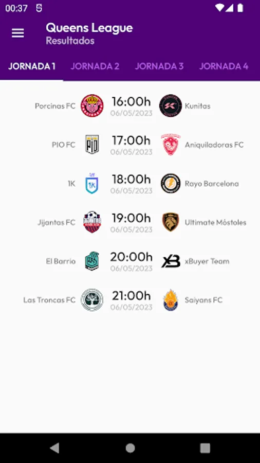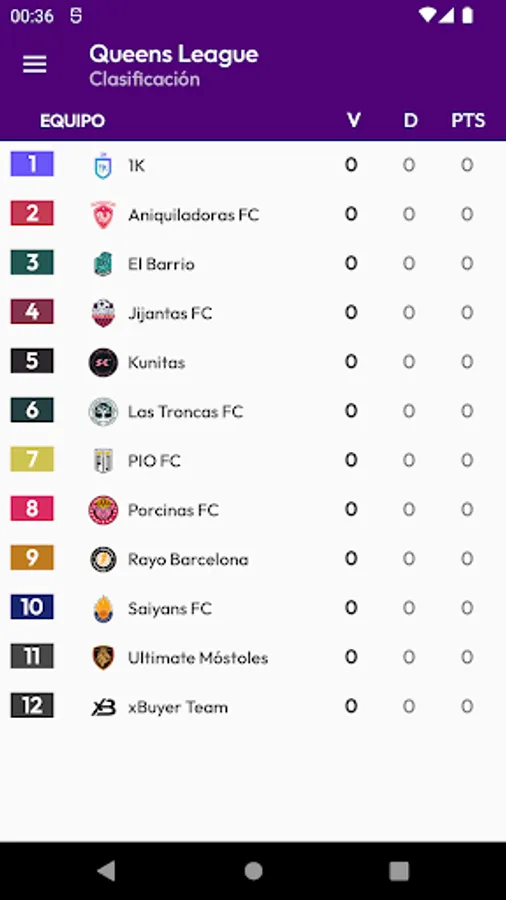 You can also consult the classification, results and information of the teams.
