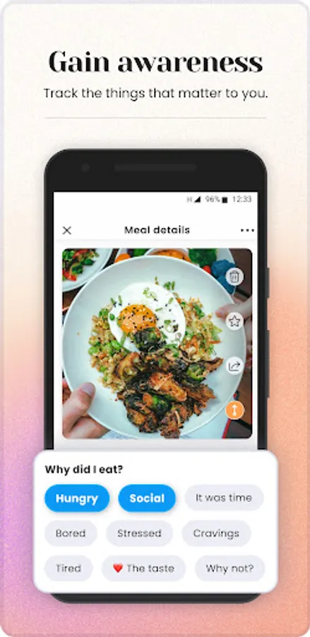 * Easy to review your eating patterns and other trends, like "Why you ate?" on the insights page.