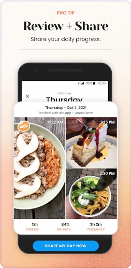 You can also easily share your food diary with others, connect with friends, or track your fasting..