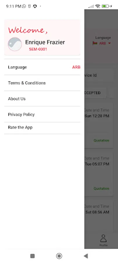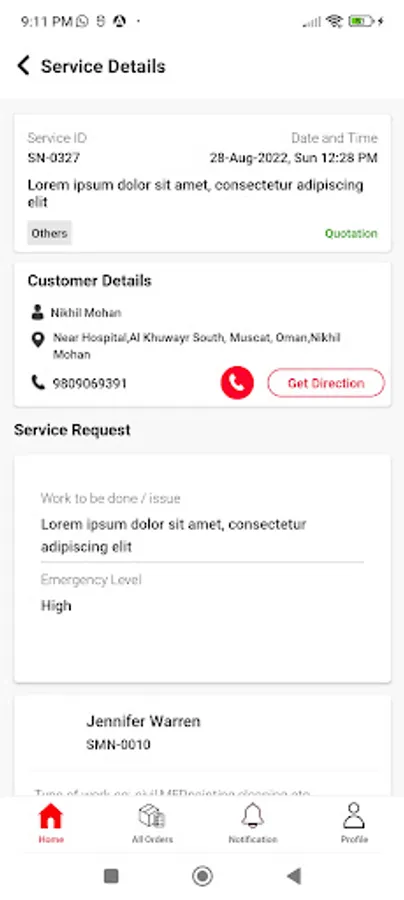 Details of the Service Orders like Customer details, type of work etc. can be found in the App.