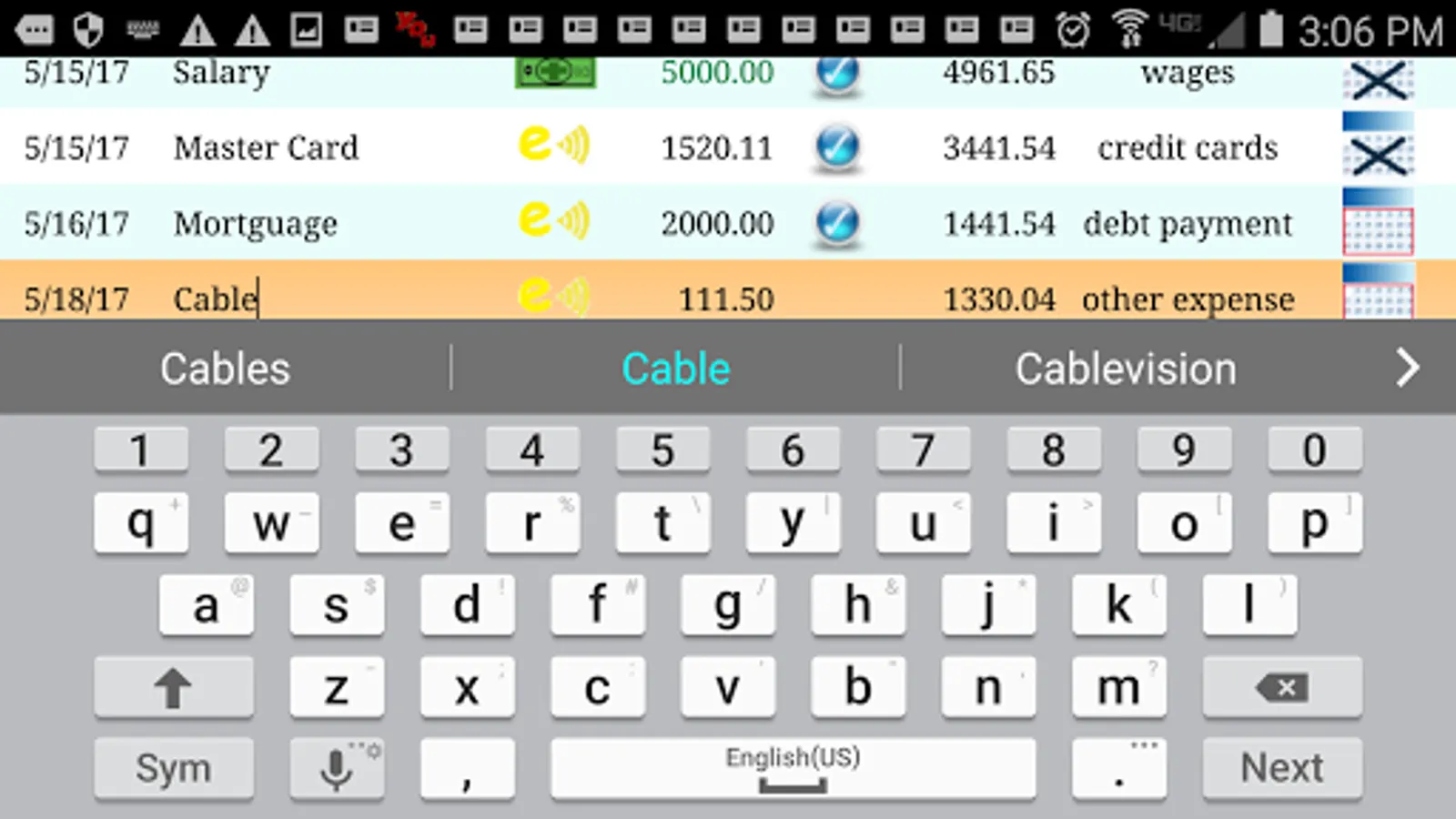 Simple bank register helps you track your checking, saving, credit card balances.