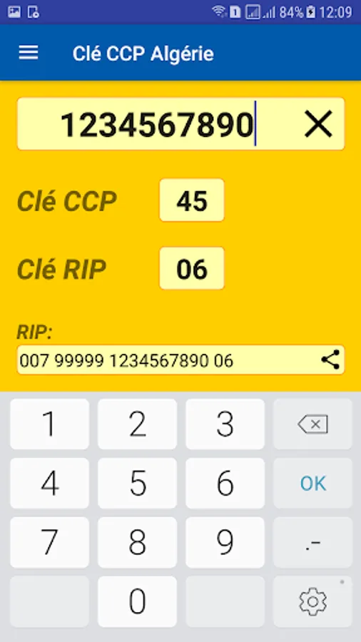 Free application for the calculation of the CCP key and the RIP key of a CCP account in Algeria.