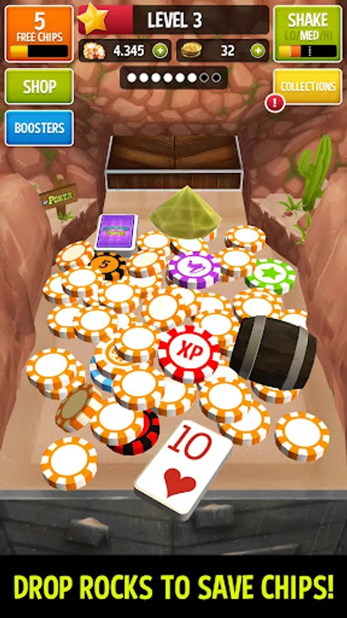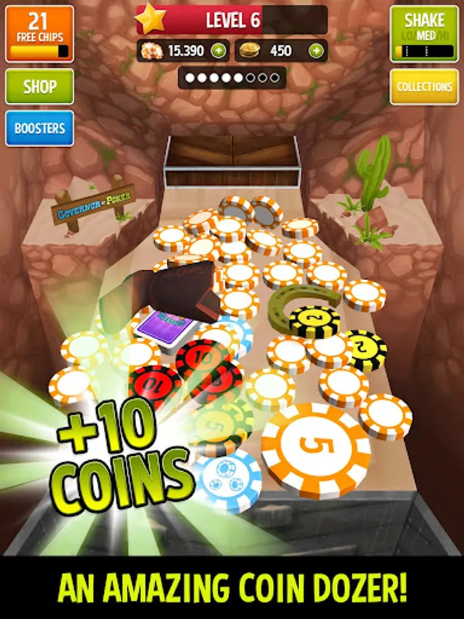 Did you ever play this favorite arcade game at a carnival, state fair or casino? This exciting coin dozer app is filled with big chip prizes and coin specials. Drop the chips in the right place and earn more chips and prizes like card decks, dices and tons.