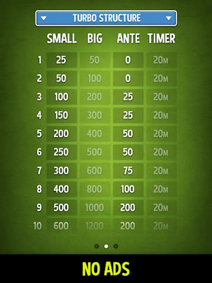 Easily setup the poker rounds, round time, poker blind values and ante in your custom setup.