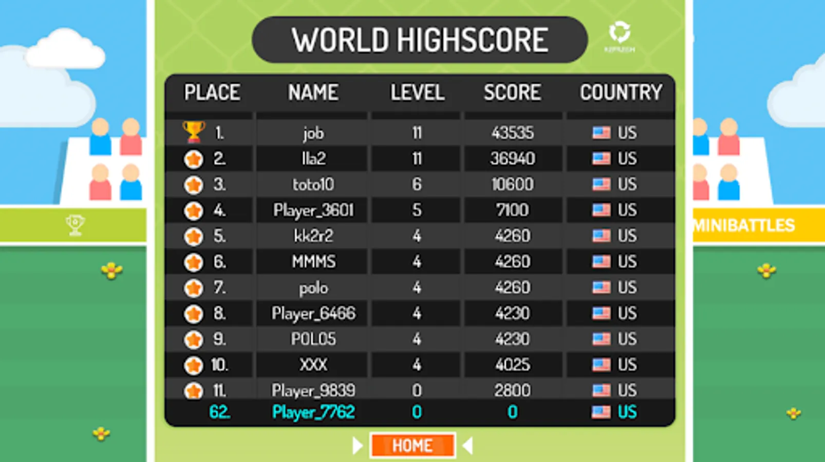 The game can be played a maximum of 20 games per game, your skill will be your best score and you will enter the top of the best players showing your best score and your country