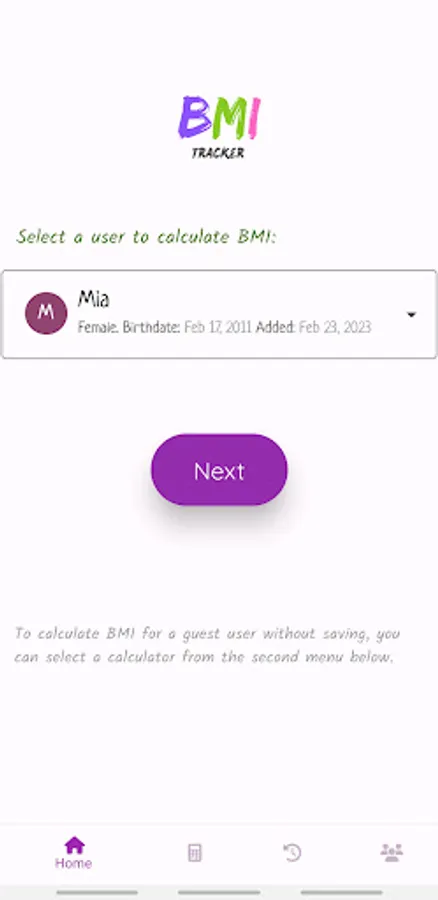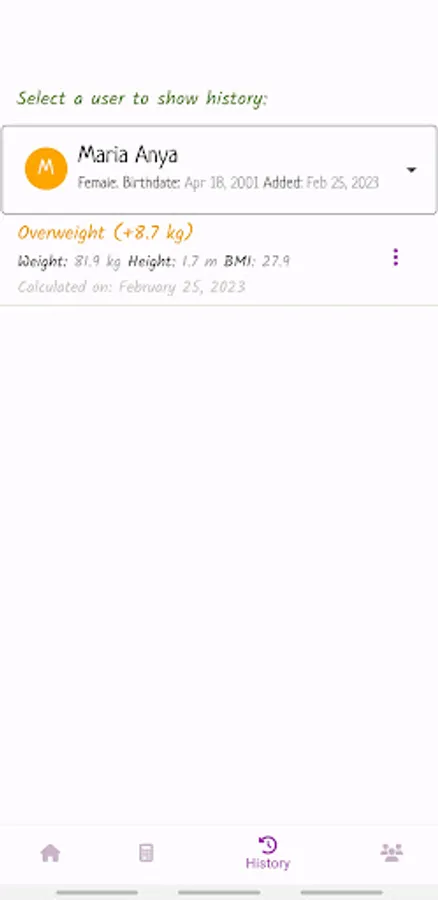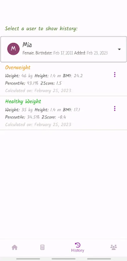 A Multi-user and locally (on device) result and history saving (with history browsing) child, teen and adult BMI calculator and weight tracker. Add as many users as you want.