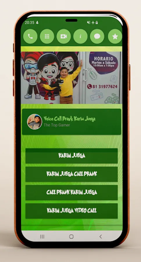 This application is not an official application of vídeos de karim juega. This fake call karim juega application only made by fans and for entertainment purpose only. If anyone feel to have the right from all of the material in this video call and chat with karim juega application just send us an email and we will unpublish it.