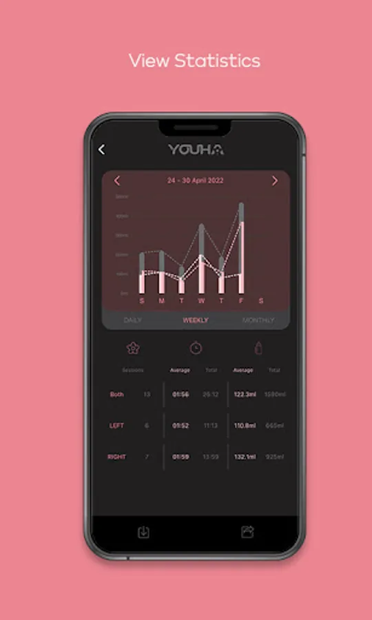 Get even more freedom and control with the My YOUHA app. The app allows you to control your YOUHA pumps remotely and track your pumping history.