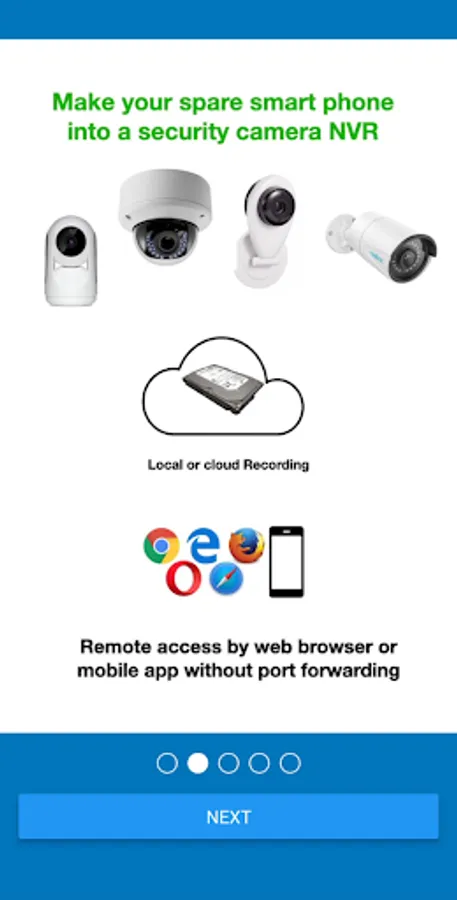 The app turns your Android device into a security camera end-to-end encryption hub or NVR device. It can run in the background without keeping the screen on.