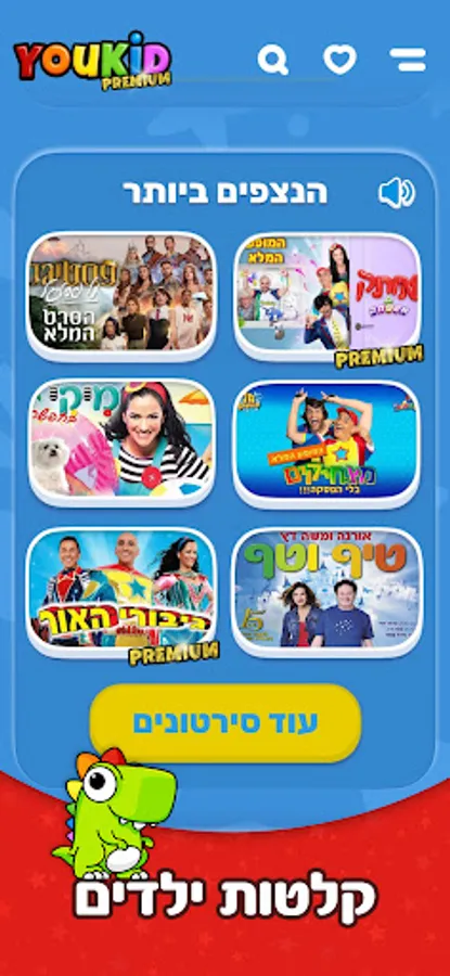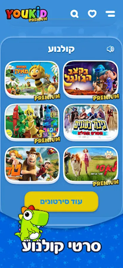 Youkid was designed especially for children and gives them a safe and easy-to-use world with the talents they know and children's content from all time including all the festigals, Motek, Baby, new and classic shows like Pim Pam Po, Dig Dig Dug, Tiff and Taf, and more. The content in Youkid is monitored and filtered and can be adjusted according to the age of your child.