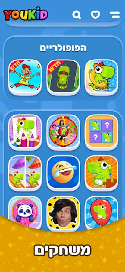 Youkid is a VOD and games application created especially for your children in a safe environment with the best content of the children's talents in Israel - Yuval HaMevulbal, Miki, Dod Haim, Menni Mamtera, Michal Haktana, Kogomelo, Kofiko, Sapir Family, Rinat Gabbay, Naama Super Al, Nati Higati, Esther Castro and more.