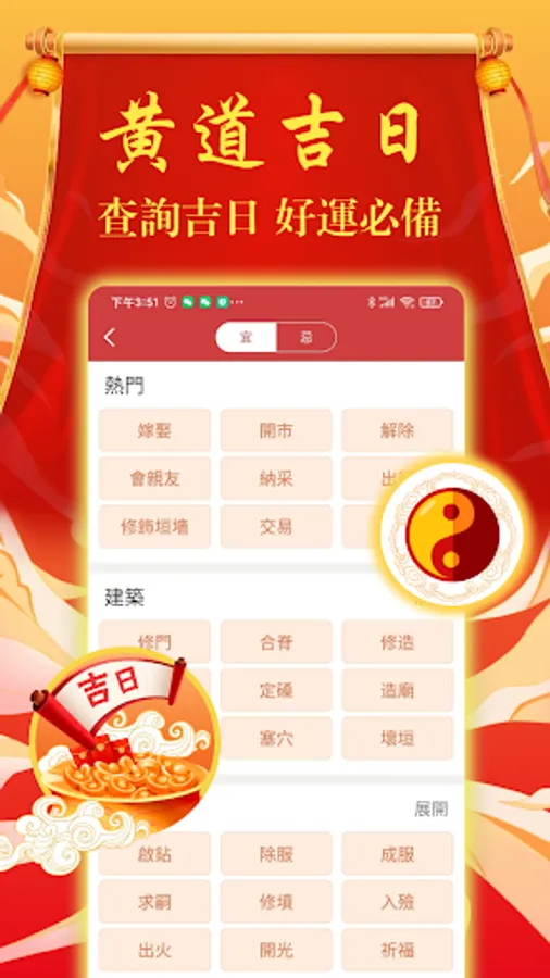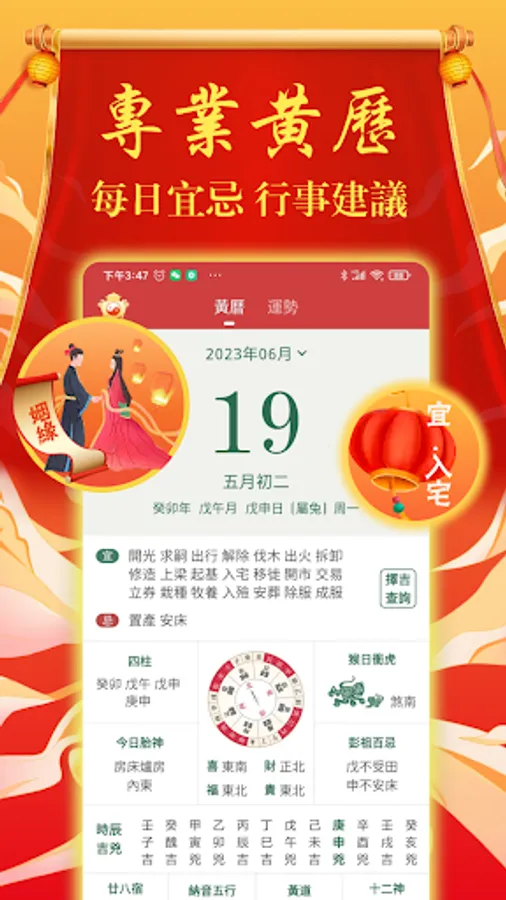 ②Fortune: View daily fortune, guide to action and folklore information for free;